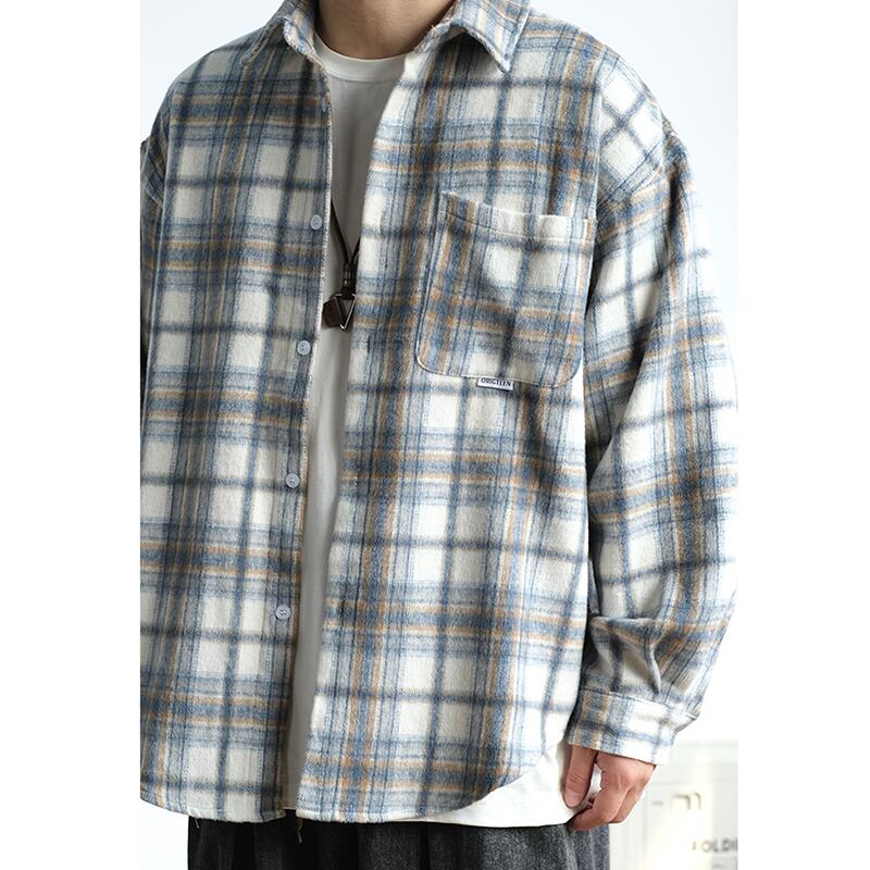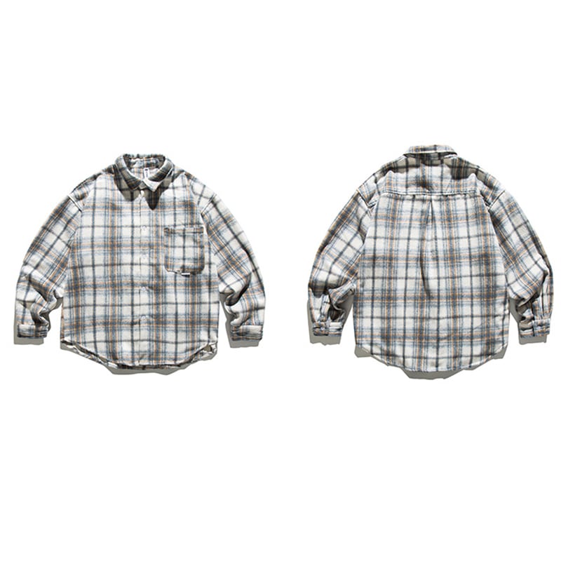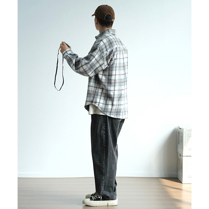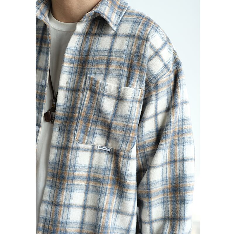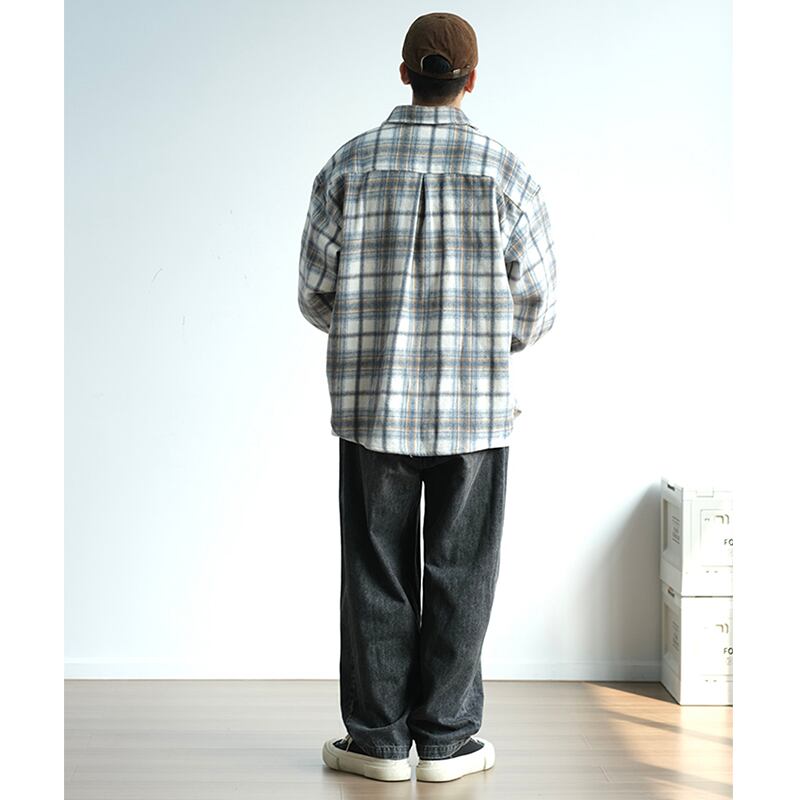 起毛感のあるフランネル地のチェック柄長袖シャツ。