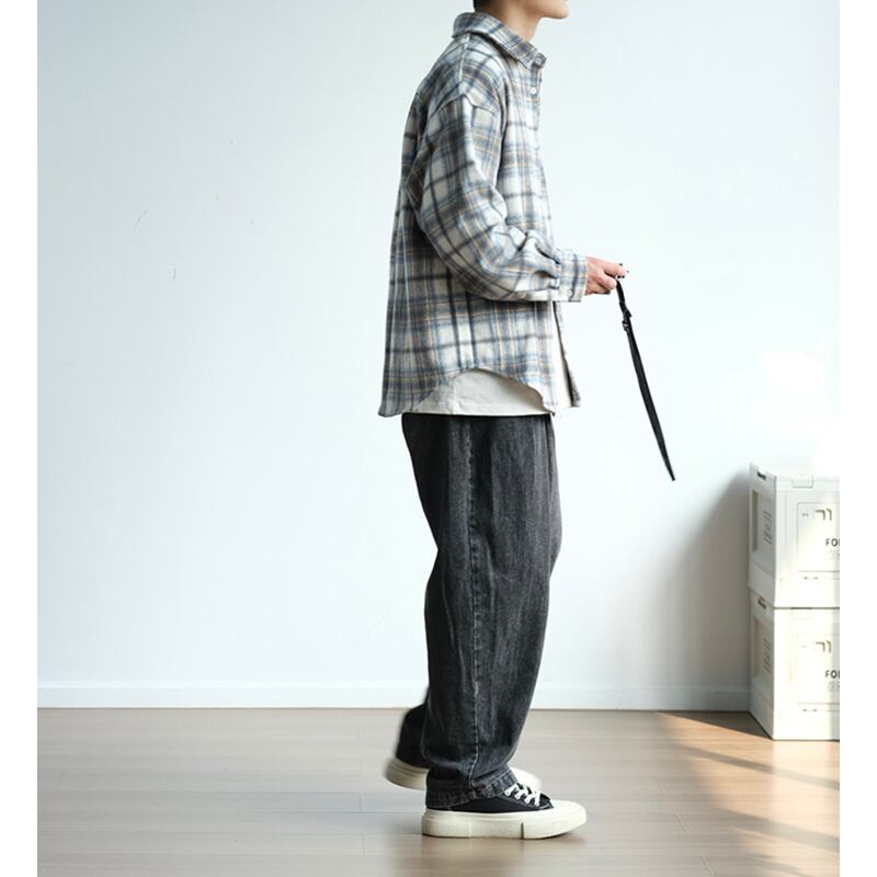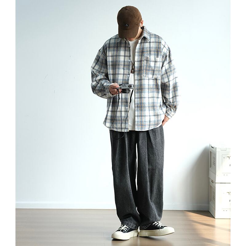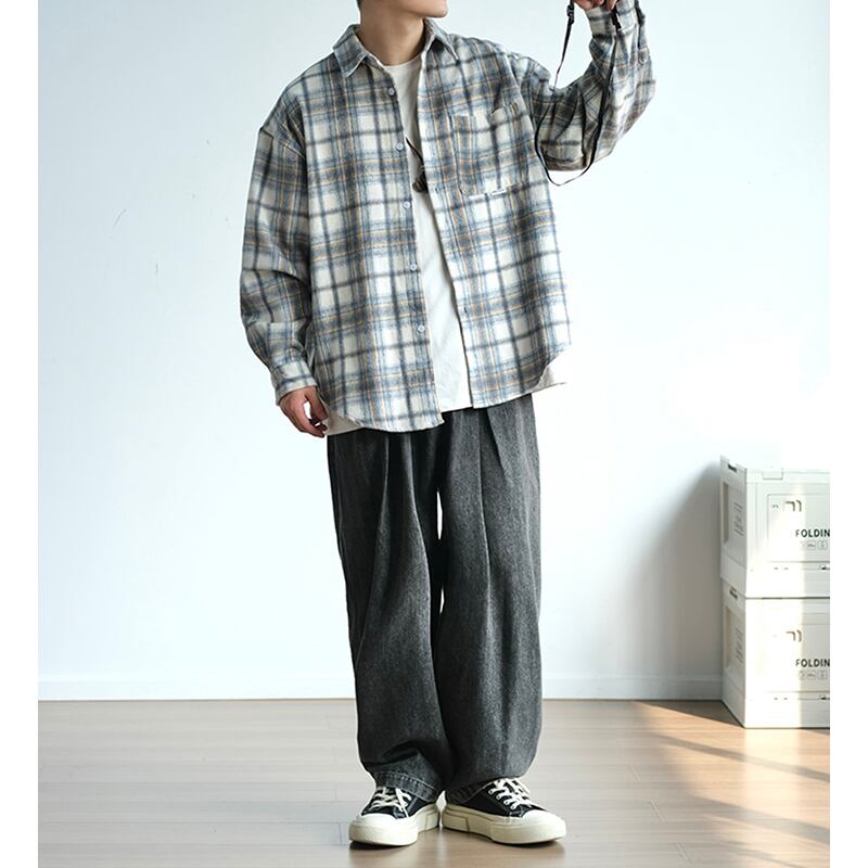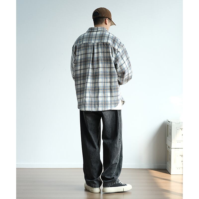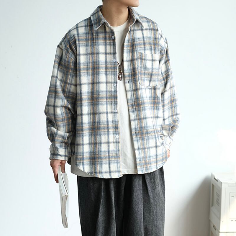 起毛感のあるフランネル地のチェック柄長袖シャツ。