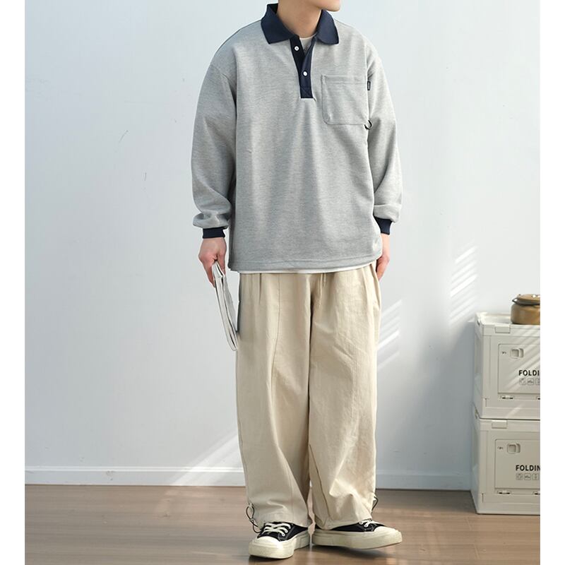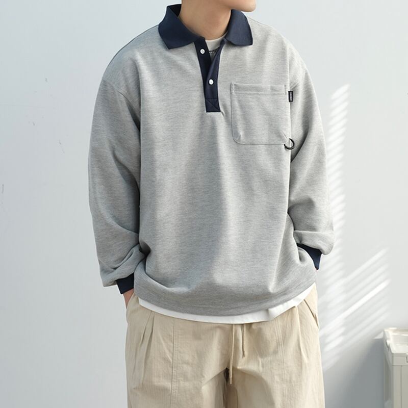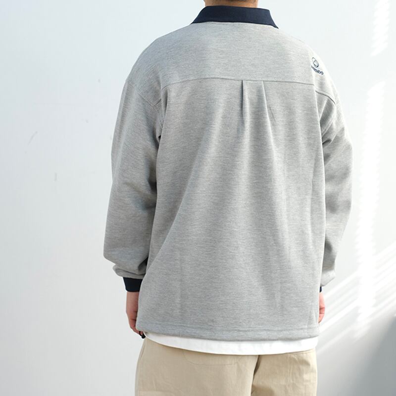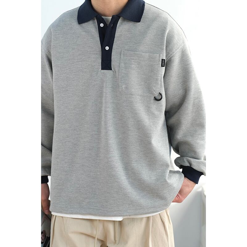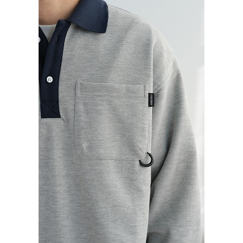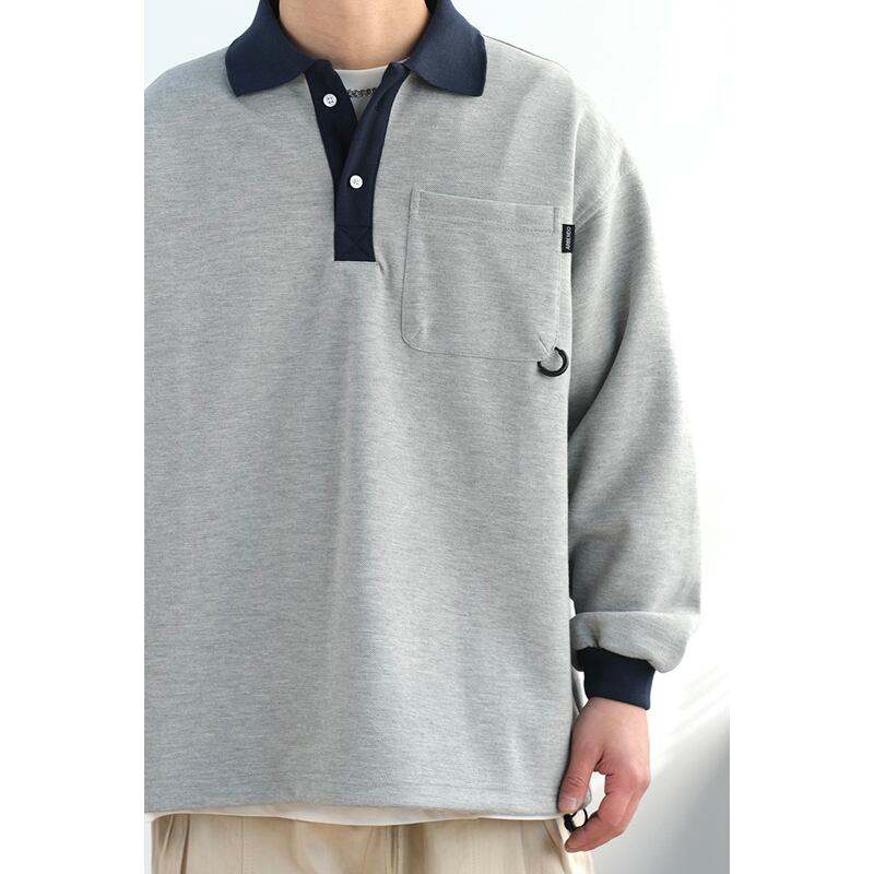 バイカラーとゆったりとしたシルエットが魅力の長袖ポロシャツ。