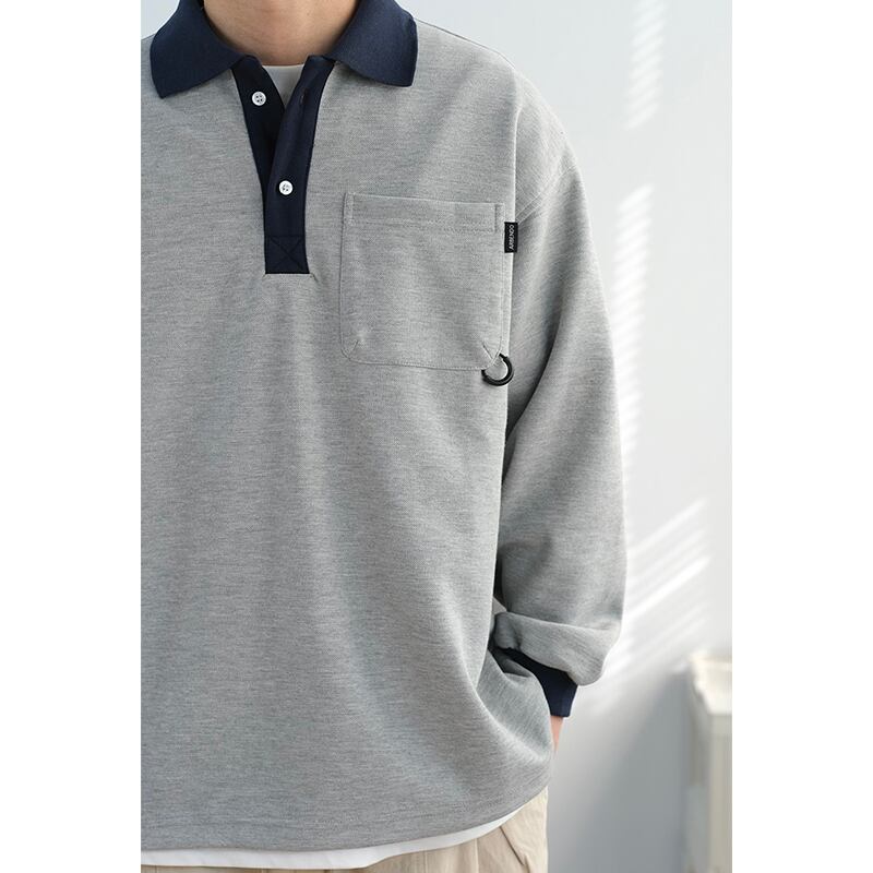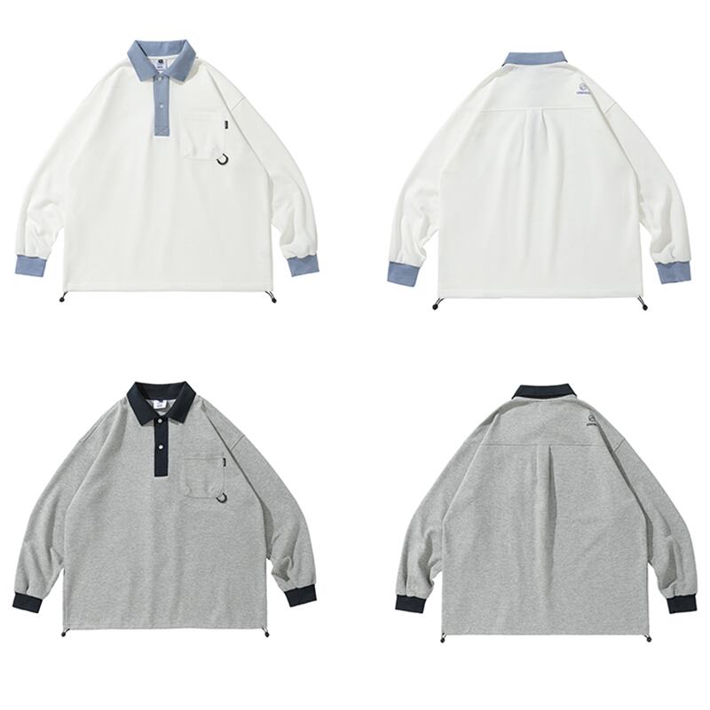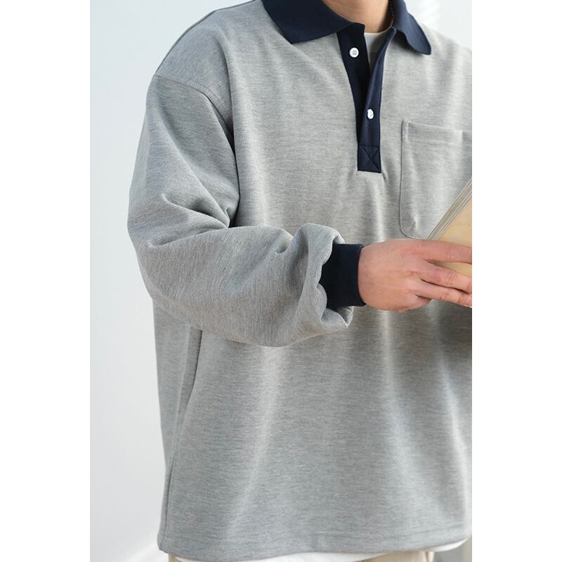 バイカラードロップショルダー長袖ポロシャツ 00009