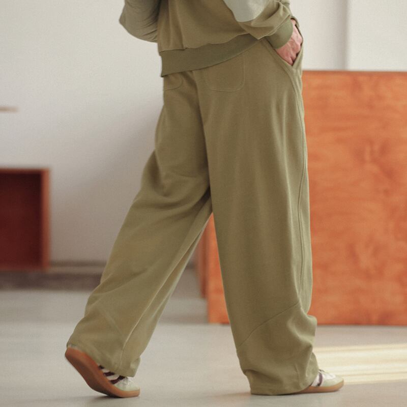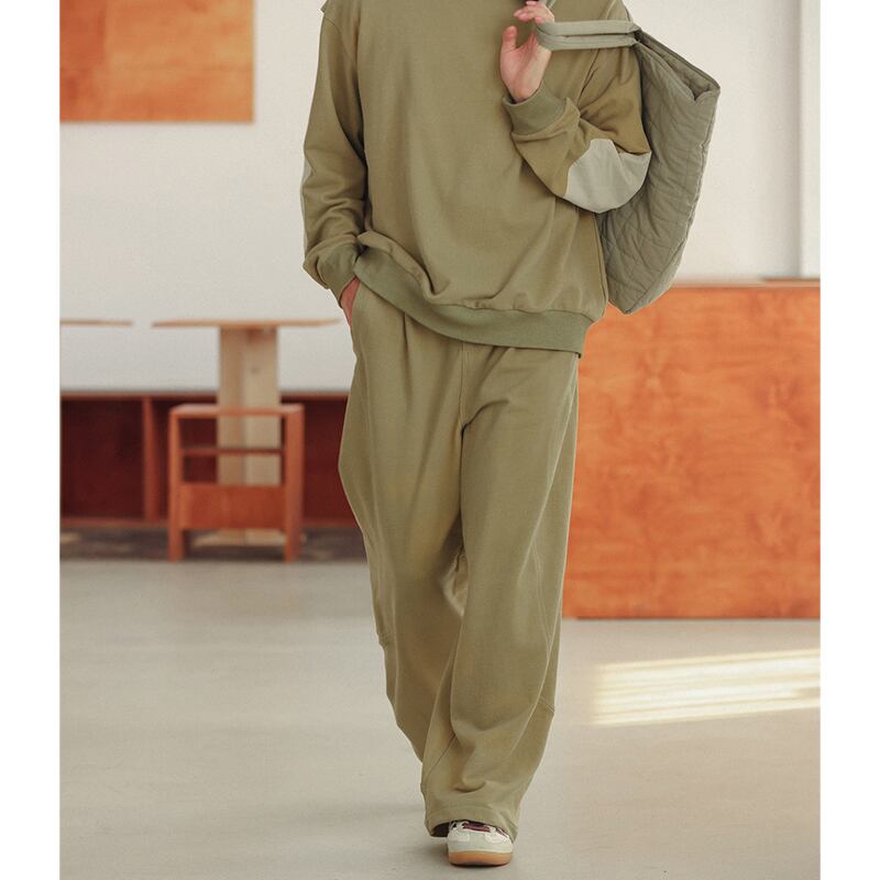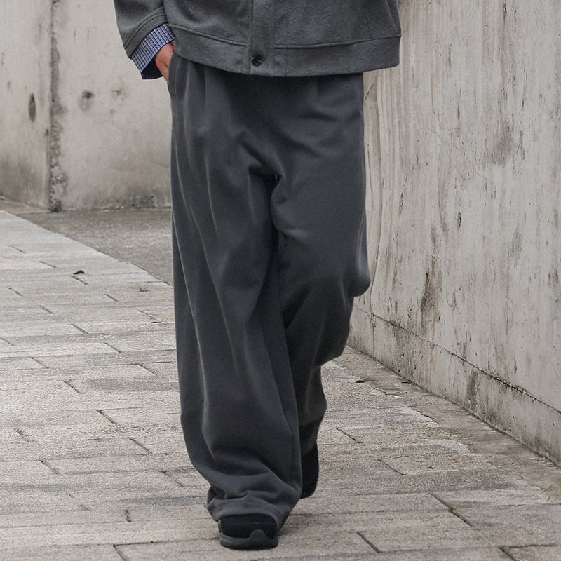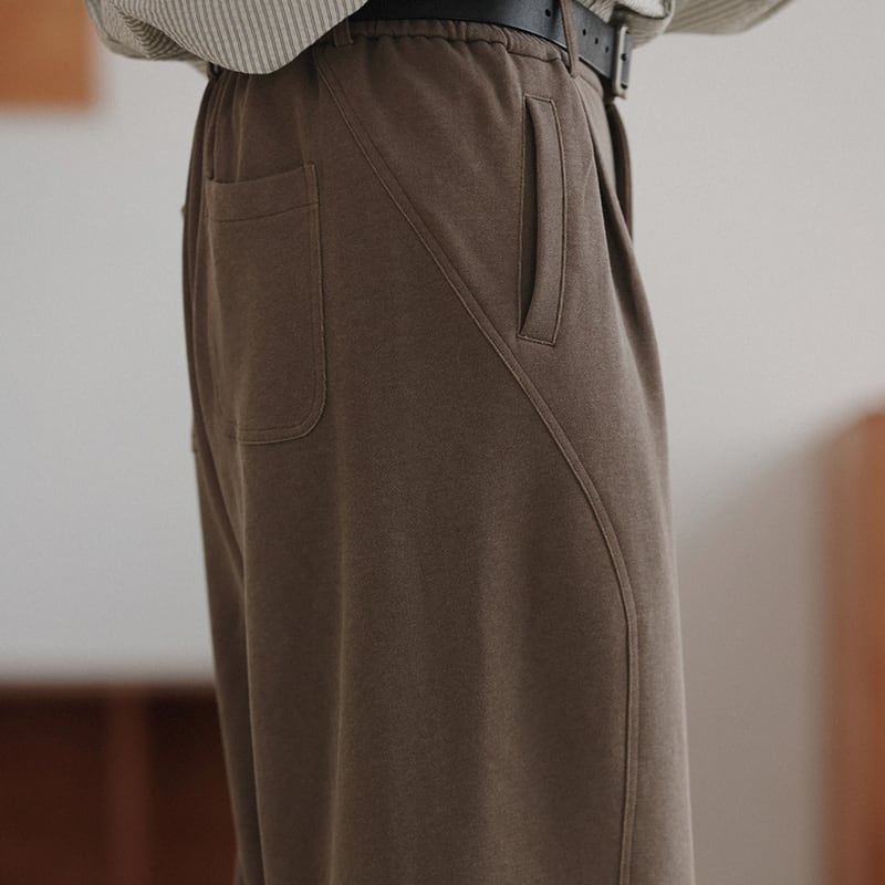 リラックス感あふれるワイドシルエットで、普段使いに最適なイージーパンツ。