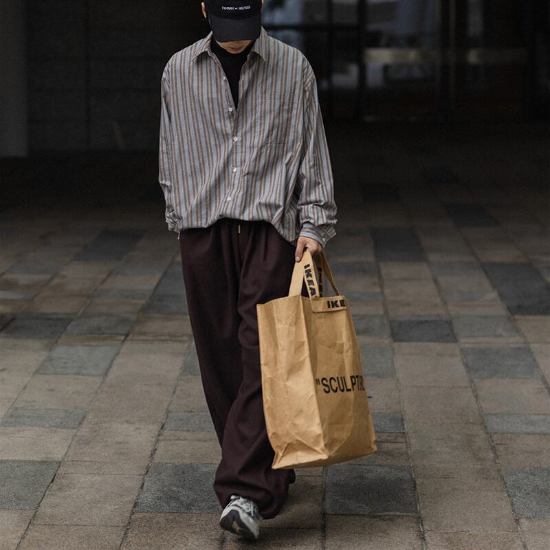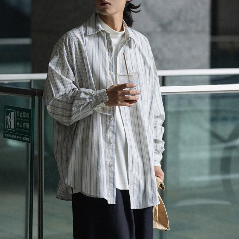 ストライプ柄が特徴的なオーバーサイズシャツ。