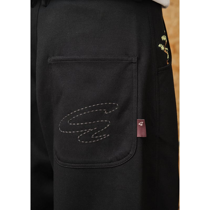 ポケットの松の刺繍デザインが、さりげない個性を演出します。