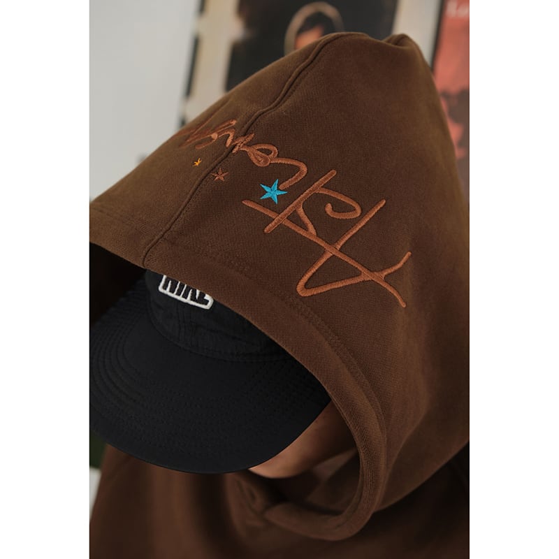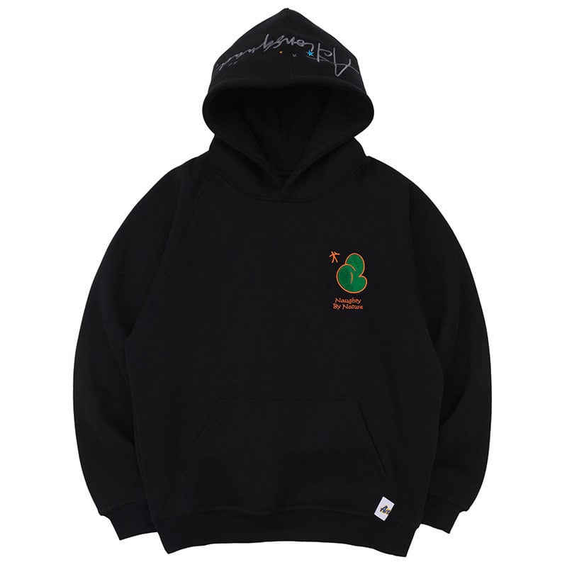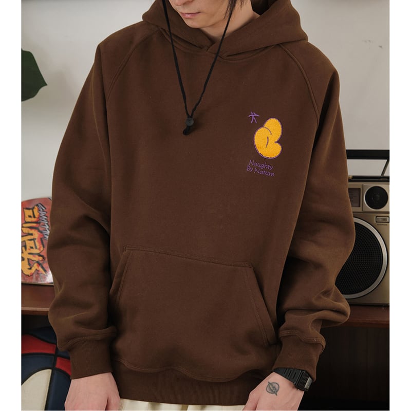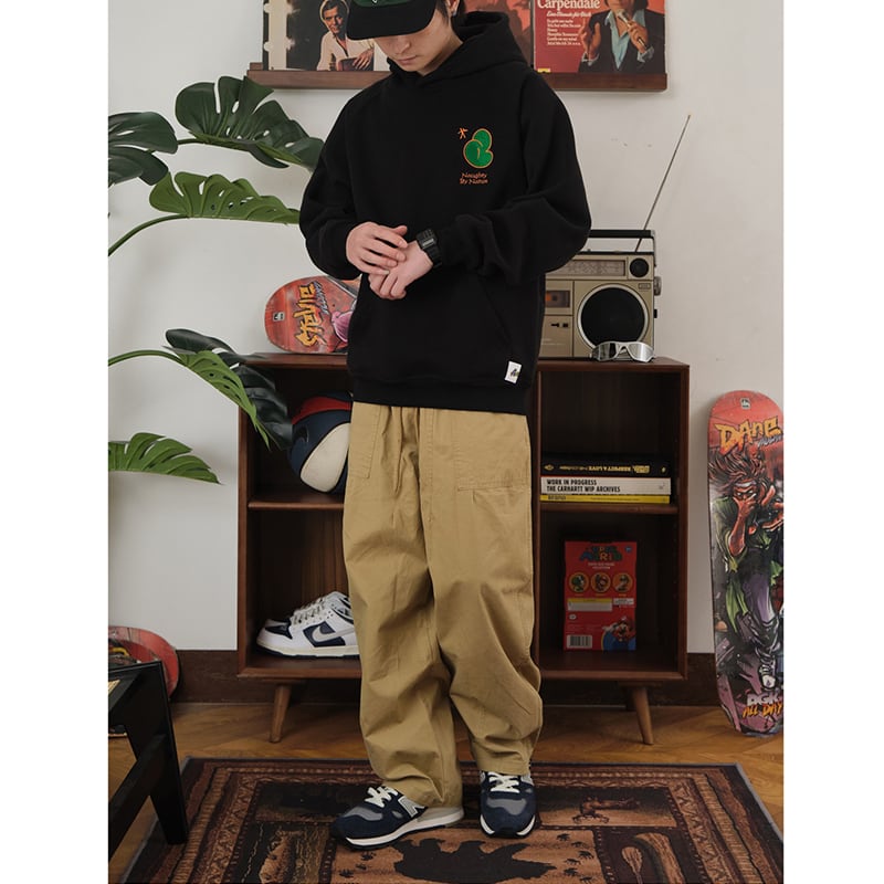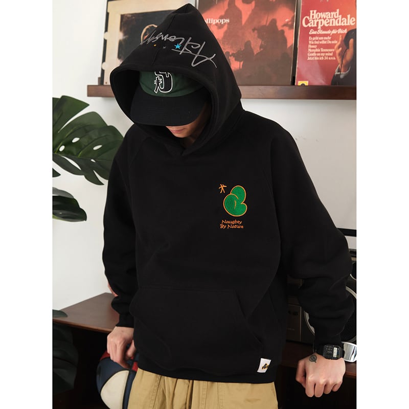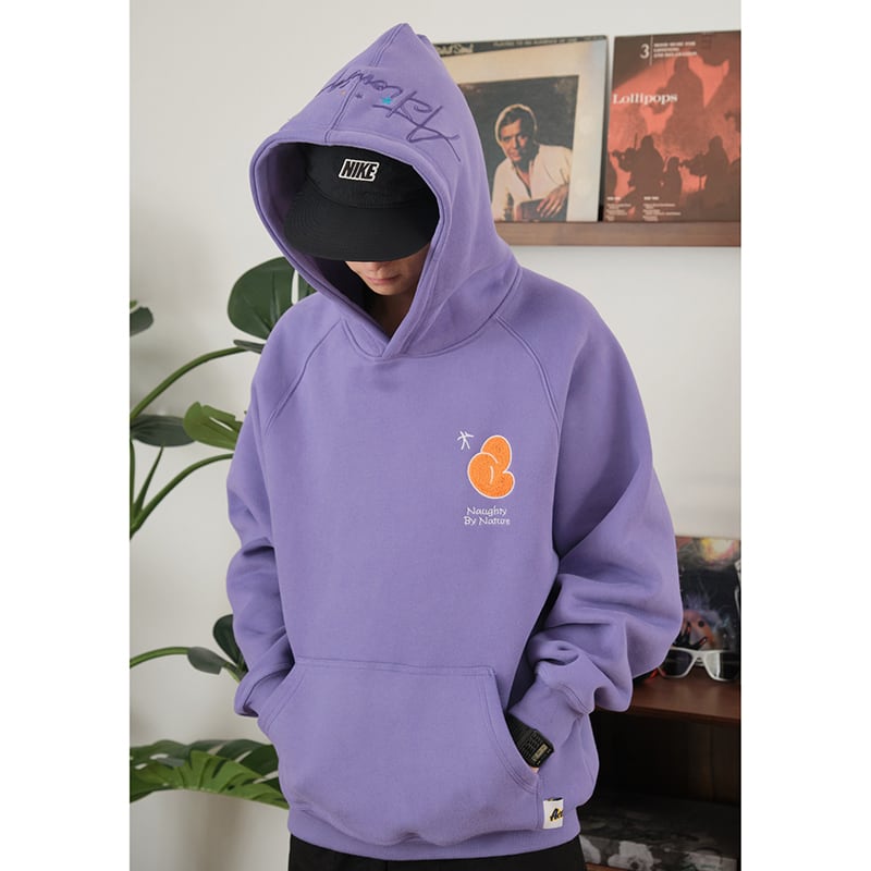 胸とフードのデザインが特徴的なスウェットパーカー。