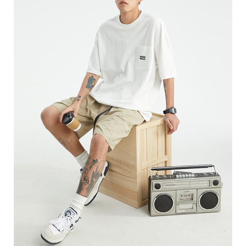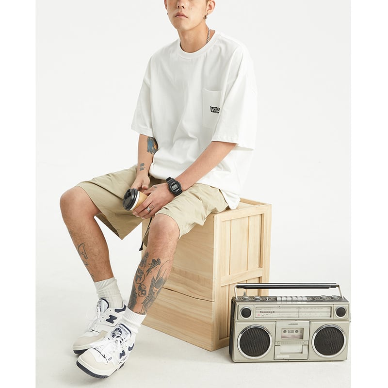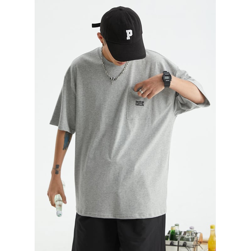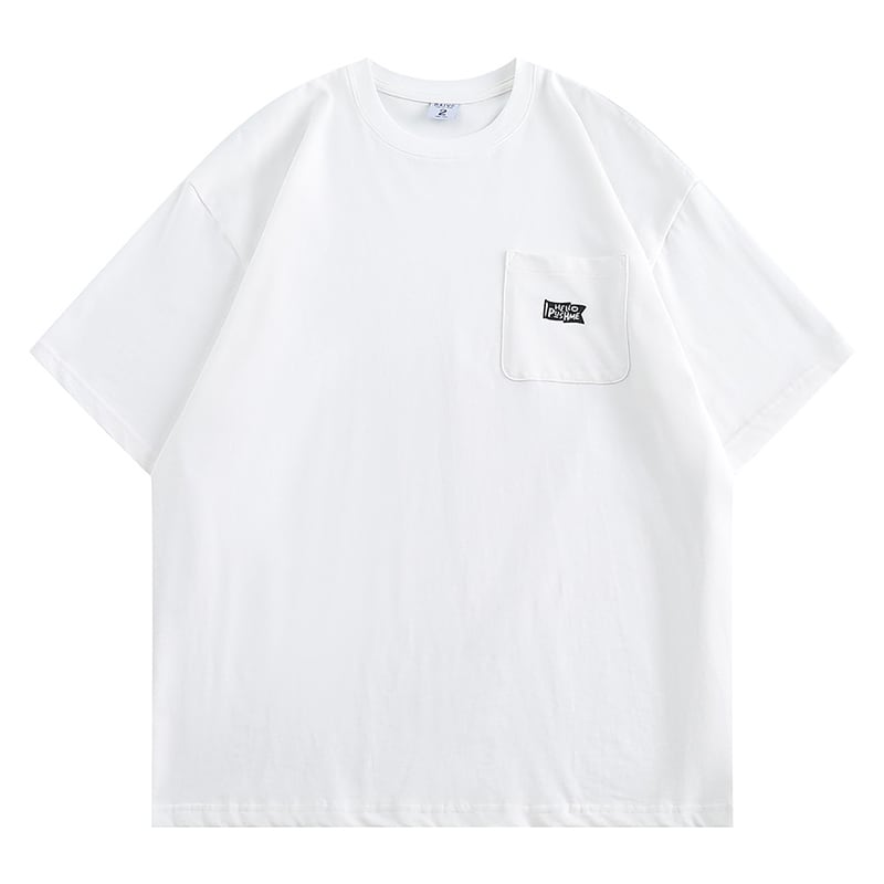 ポケットのワンポイントロゴが特徴的な半袖Tシャツ。